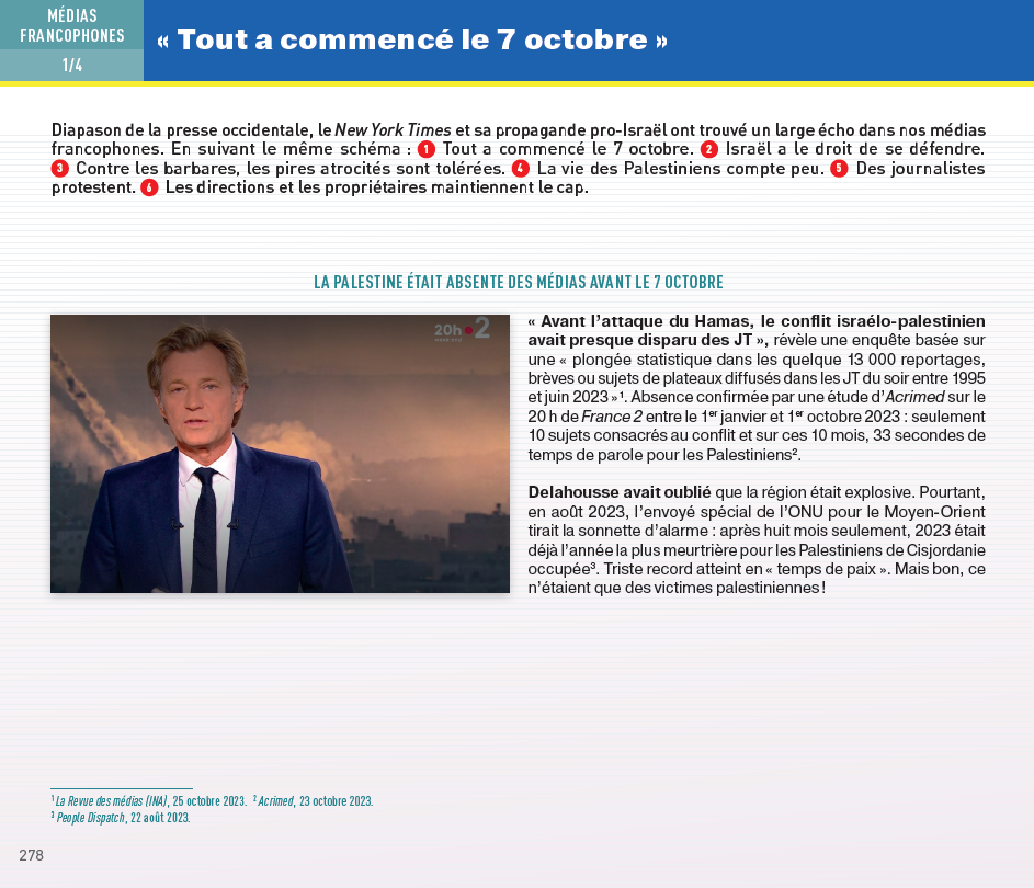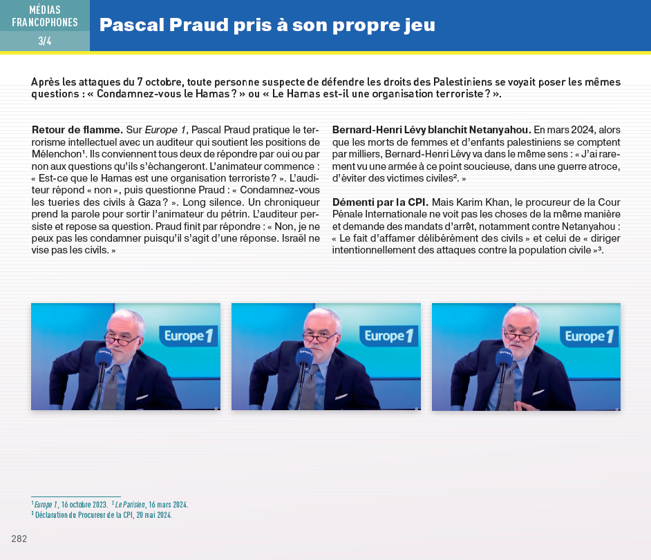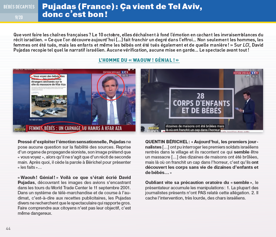 Ces méthodes furent — et demeurent — systématiques sur les principales chaînes françaises de télévision et de radio, publiques comme privées, ainsi que dans les grands journaux et magazines, du centre gauche à l’extrême droite.