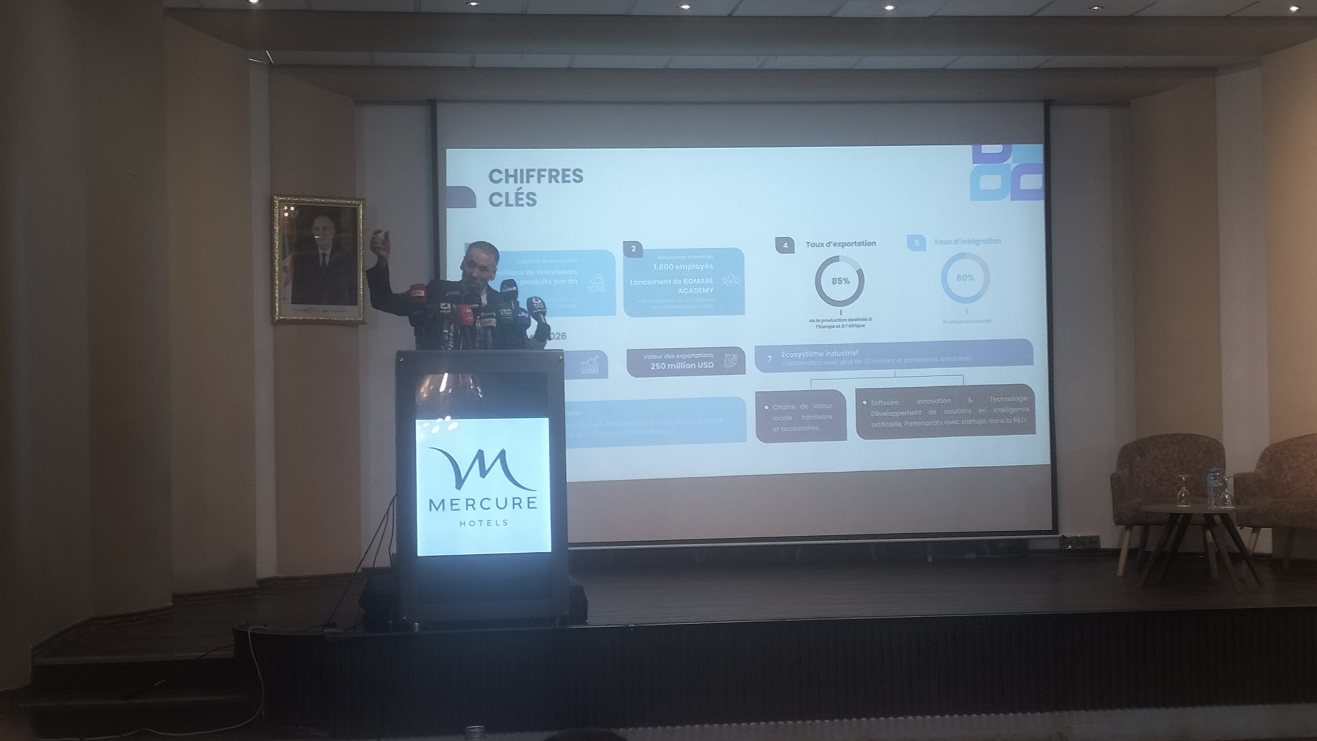 Au cours de cette rencontre, Ali Boumediene a souligné la nouvelle campagne de réparation des téléviseurs, qui comprend tous les écrans et cartes mères, avec la mise en place d’une plate-forme spéciale et de l’application Stream App. Celle-ci se fera au niveau de l’unité industrielle de Blida qui sera ouverte prochainement. Elle pourra produire environ trois millions de téléviseurs par an, avec un taux d’intégration estimé à environ 60 % soulignant l’ambition d’exporter vers le marché européen, car c’est l’un des plus grands marchés de consommation et donc le plus important, avec un volume estimé à environ 35 millions d’appareils et un chiffre d’affaires pouvant atteindre 10 milliards de dollars. Bomare Company aspire à réaliser des ventes comprises entre 3 et 10 % des parts de marché.