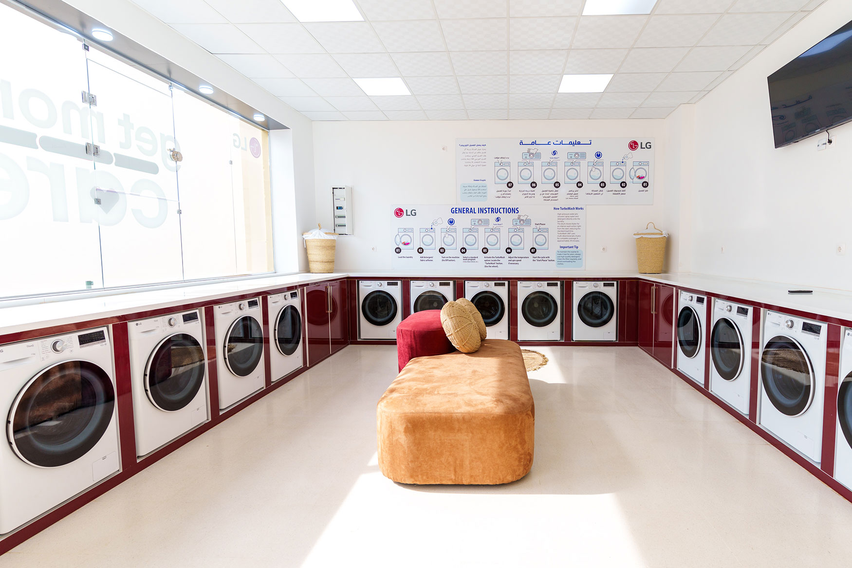 Les machines à laver ajustent automatiquement les programmes selon le type de tissu et le poids du linge, avec un faible niveau sonore et une consommation optimisée d’eau et d’électricité. Le téléviseur offre une qualité d’image exceptionnelle pour les espaces communs, et le climatiseur assure un confort thermique optimal toute l’année.