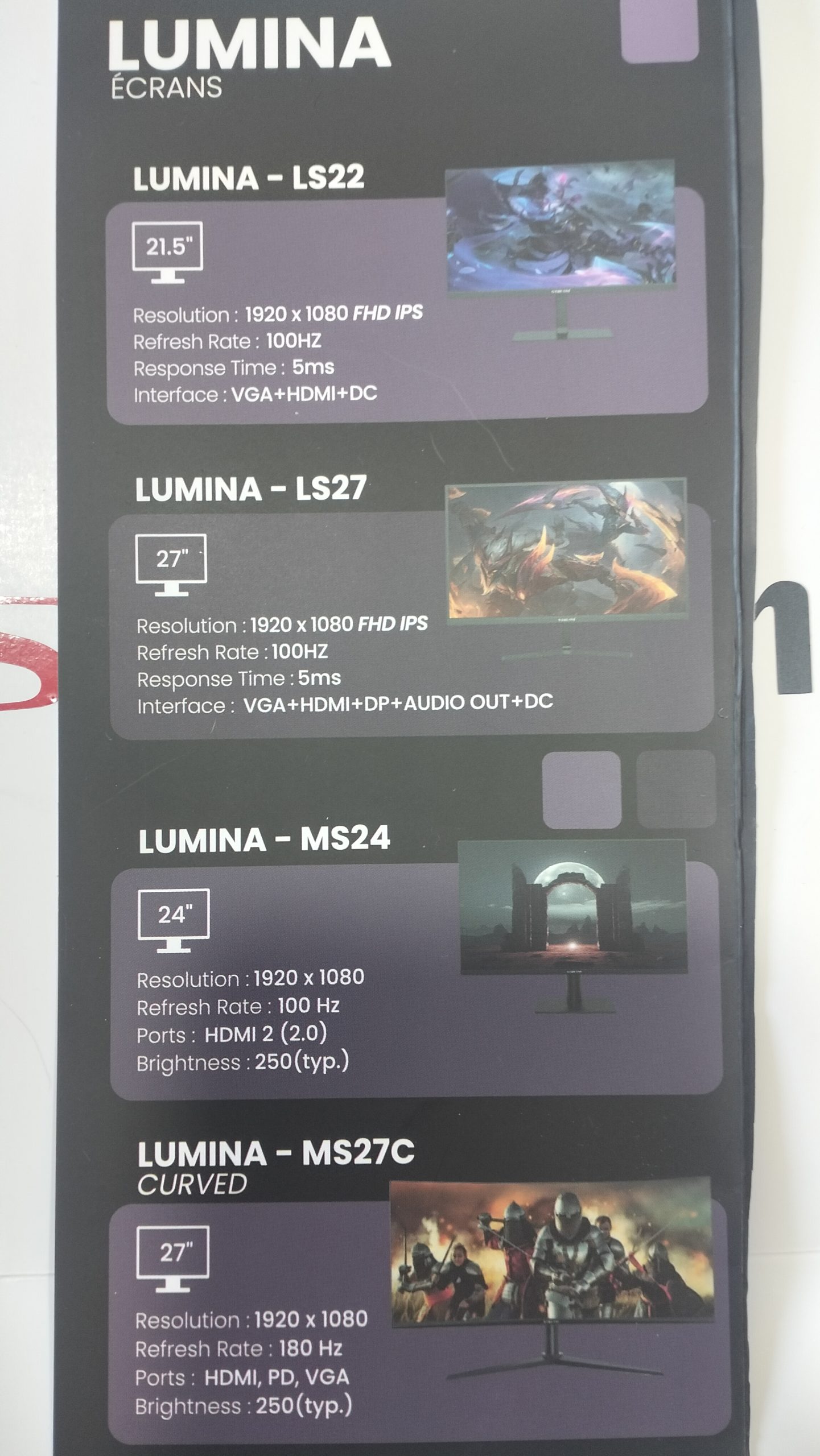 - Moniteurs et moniteurs gaming, garantissant une qualité d’affichage exceptionnelle et des performances optimisées pour les amateurs de jeux vidéo et de graphisme.