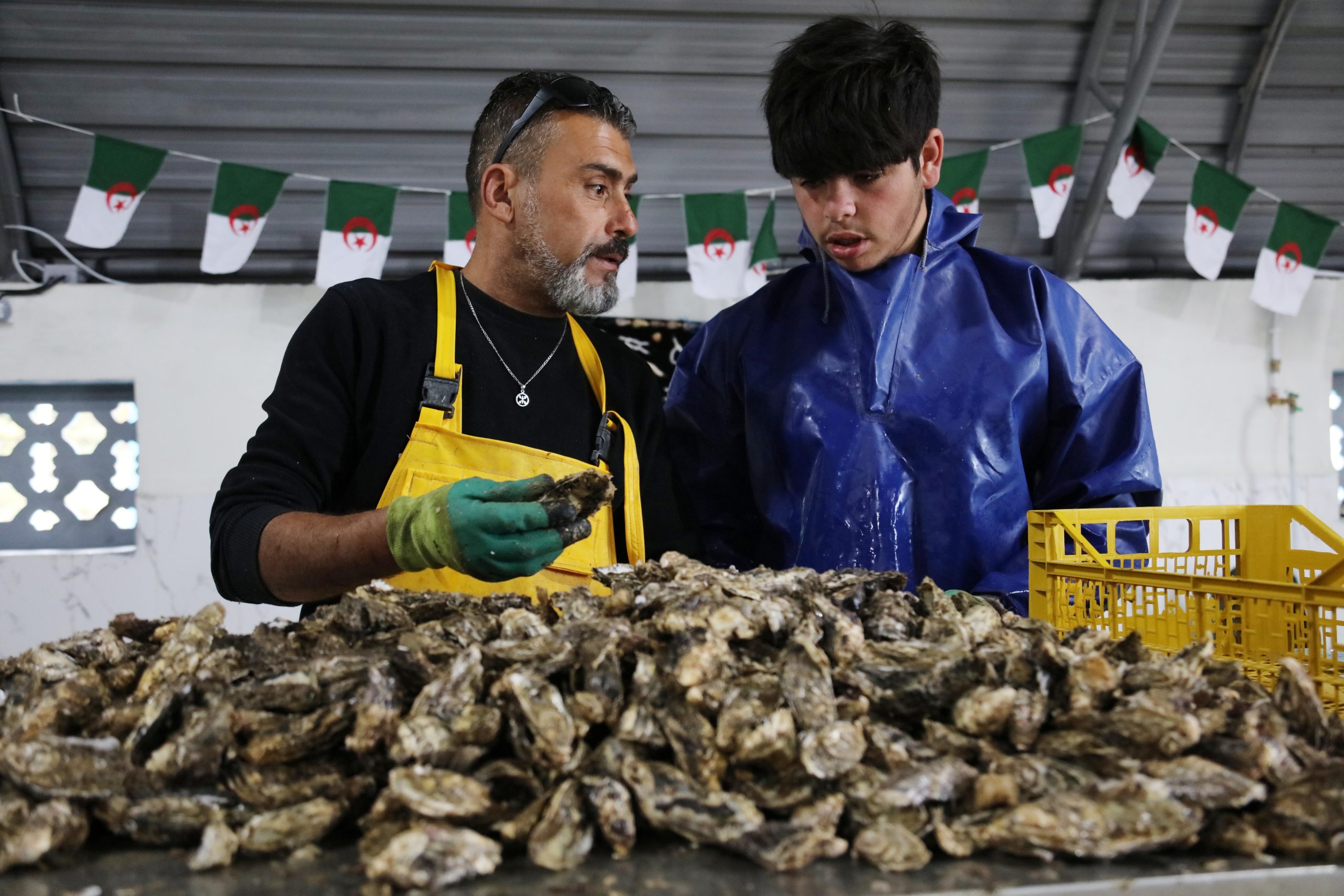 A Tigzirt, Hocine et Yasmina Lahilah, jeune couple à la tête d’Aqua-Bivalvia, supervisent la récolte de huîtres et de moules. « Nous avons obtenu deux concessions, une de 800 mètres carrés dans cette zone et une autre, en mer, d’une superficie de 5 hectares », explique Hocine. Le couple d’ingénieurs en sciences de la mer a bénéficié des mécanismes de soutien publics, notamment celui de l’Agence nationale d’appui et de développement de l’entrepreneuriat (Anade).