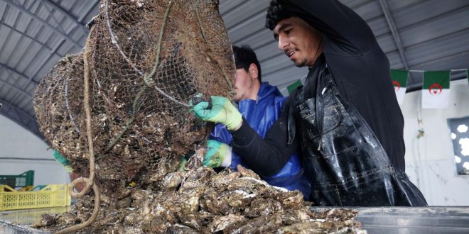 A Tigzirt, Hocine et Yasmina Lahilah, jeune couple à la tête d’Aqua-Bivalvia, supervisent la récolte de huîtres et de moules. « Nous avons obtenu deux concessions, une de 800 mètres carrés dans cette zone et une autre, en mer, d’une superficie de 5 hectares », explique Hocine. Le couple d’ingénieurs en sciences de la mer a bénéficié des mécanismes de soutien publics, notamment celui de l’Agence nationale d’appui et de développement de l’entrepreneuriat (Anade).